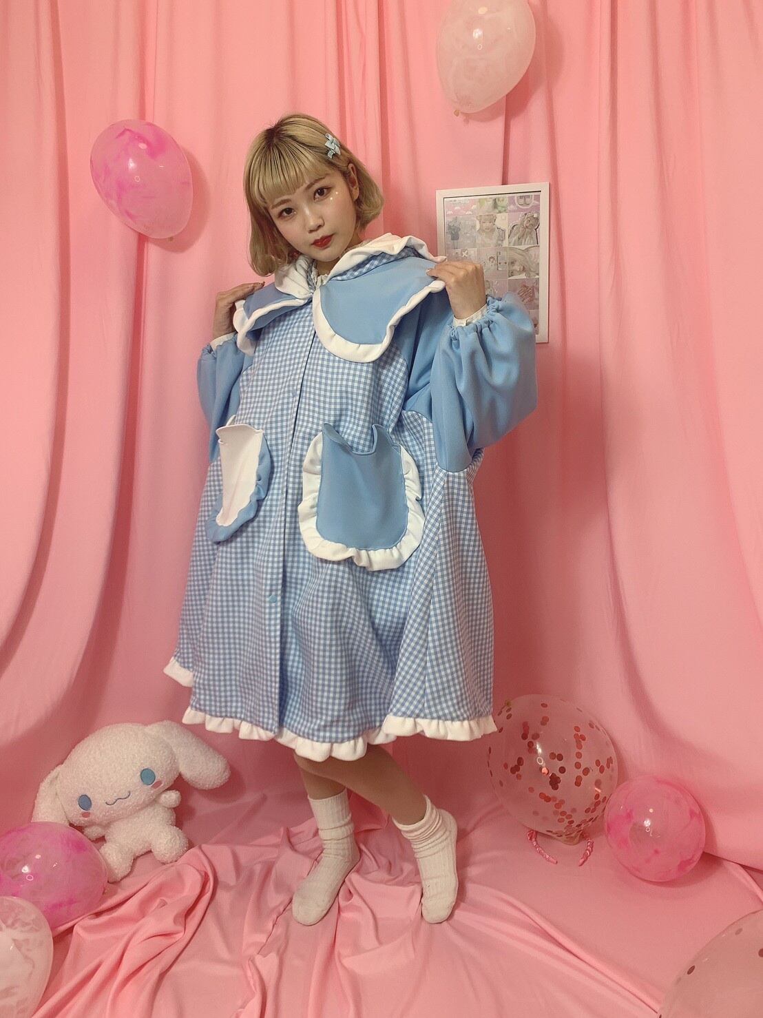 表素材はポリエステルの厚地の生地を使っており、袖部分はジャージ素材を使用しています。裏地もついているので秋、冬、春に着用して頂けると思います♡